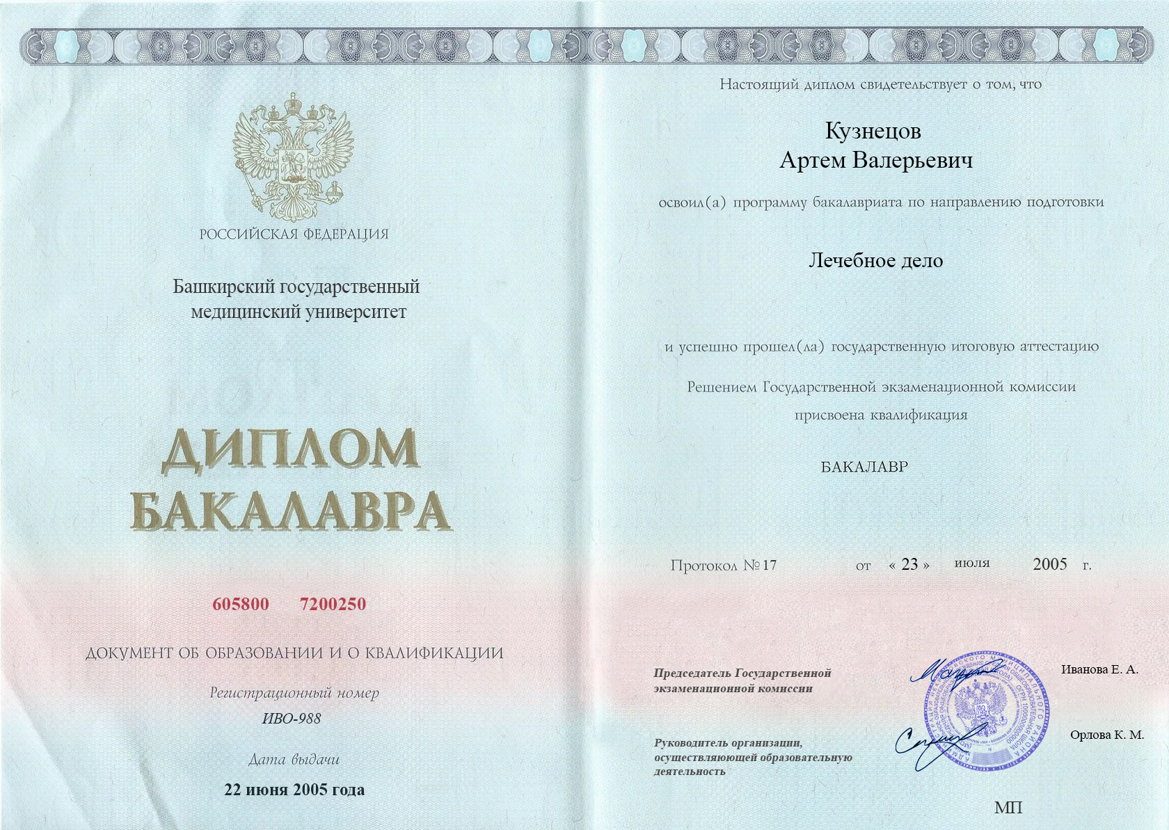 ВУЗ: Уфимский государственный медицинский университет, 2005 г.